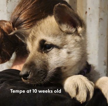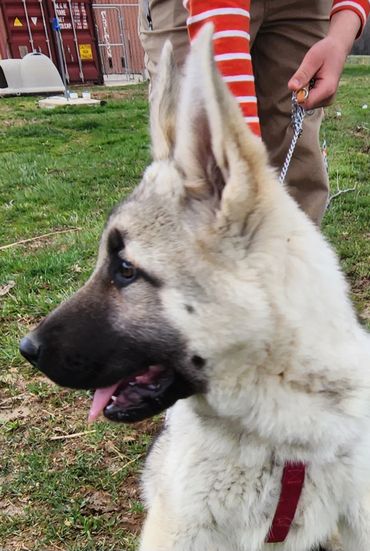 Lila was born in August 2021, a Schutzhaus puppy from Schutzhaus German Shepherds. She is a black and cream saddleback. The picture shown with her puppies has her winter coat on, so she is darker than what she normally is. Lila is very sweet and loves to run beside our son on his bike. Lila is very athletic, but is not hyper, she plays when it's play time then relaxes. She's always up for a belly rub or petting in general.